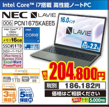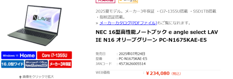 NEC LAVIE一般的なモデルでいうと