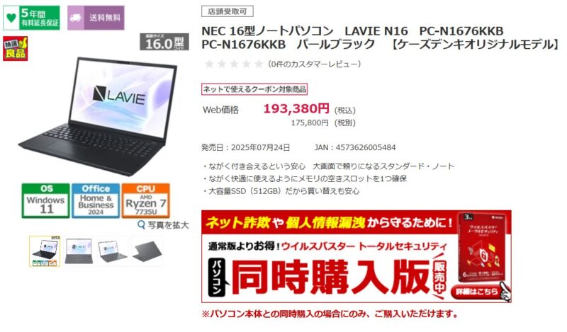 これで調べると、ケーズデンキさんも同じ型番がネットシップでありましたが