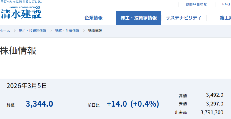清水建設の強みは、やはり本業の安定感です。