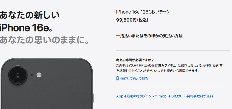 (2025.12時点 iPhone16e128GB Apple Storeより)