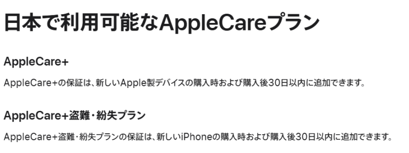 - iPhone購入後30日以内なら後から加入可能(日本)