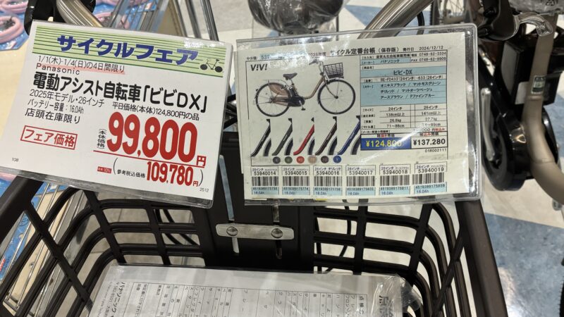 ▼ Panasonic電動自転車ビビ他店舗の価格比較(2025年モデル)2026年1月時点