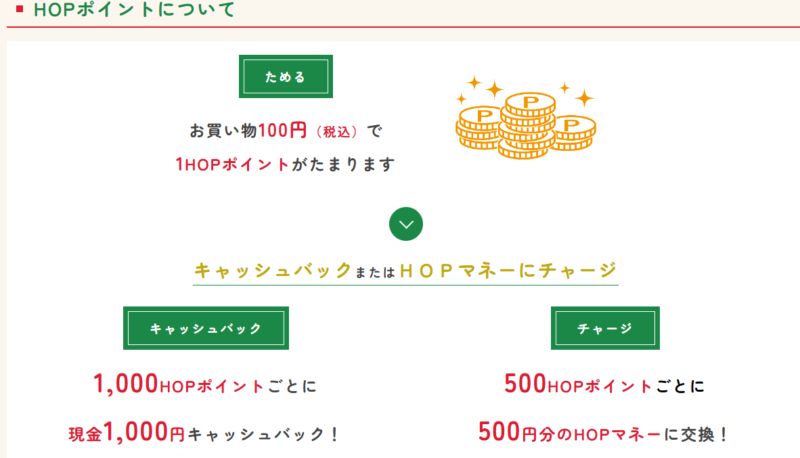 HOPカードで貯まるHOPポイントは↓こちら