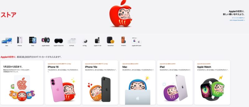 - Apple初売り特典:8,000円分ギフトカード
