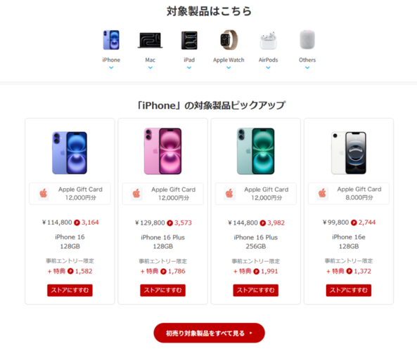 - 追加特典として Apple Gift Card(8,000円分) が付与